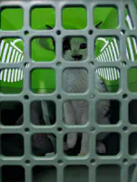 More ...Gata was sometimes seen and fed, and a few days ago a message appeared in the neighborhood chat: she was running around a parked car, crying loudly because her kitten was inside. Our volunteers spent almost an hour coaxing the little one out from under the car — lying on the ground, blindly reaching for something soft and warm. At first they thought the kitten had run away and wasn’t there, but then, among the mechanisms, their hands found a fluffy and bitey little ball. Another 20 minutes — and Syrnik finally allowed herself to be pulled out. That’s how we first met her.