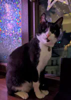 More ...🐟 Ryba is very playful and curious. She loves climbing to new heights, discovering new hiding spots, and hunting invisible crumbs. She has a real passion for lavash and corn. She’s quite easygoing with people and gets along well with other cats. She enjoys cuddles a bit less than Yoda and doesn’t usually come to sit on laps, but she’s still affectionate and sociable.