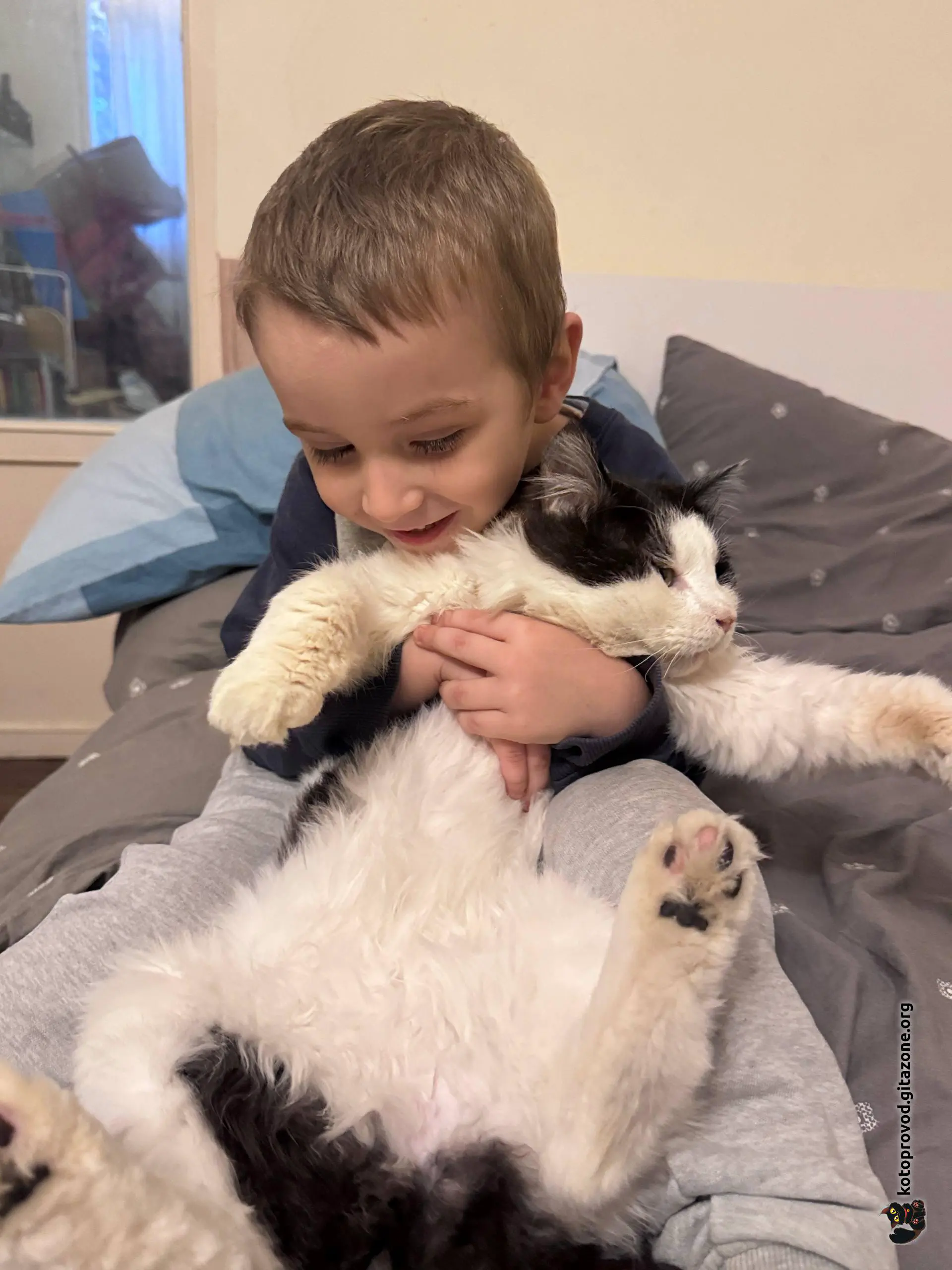 Gata was sometimes seen and fed, and a few days ago a message appeared in the neighborhood chat: she was running around a parked car, crying loudly because her kitten was inside. Our volunteers spent almost an hour coaxing the little one out from under the car — lying on the ground, blindly reaching for something soft and warm. At first they thought the kitten had run away and wasn’t there, but then, among the mechanisms, their hands found a fluffy and bitey little ball. Another 20 minutes — and Syrnik finally allowed herself to be pulled out. That’s how we first met her.