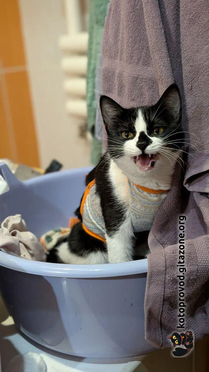 Now Gata and her daughter are in temporary foster care. Syrnik is about a month old, and her mom is still nursing her. Once the feeding period ends, we’ll take Gata to be spayed — we had to postpone the surgery, since for now she wouldn’t be able to wear the recovery vest. After that, we’ll have to release Gata back to the street, unless a home is found for her by then 😔