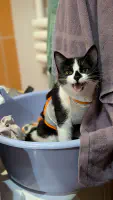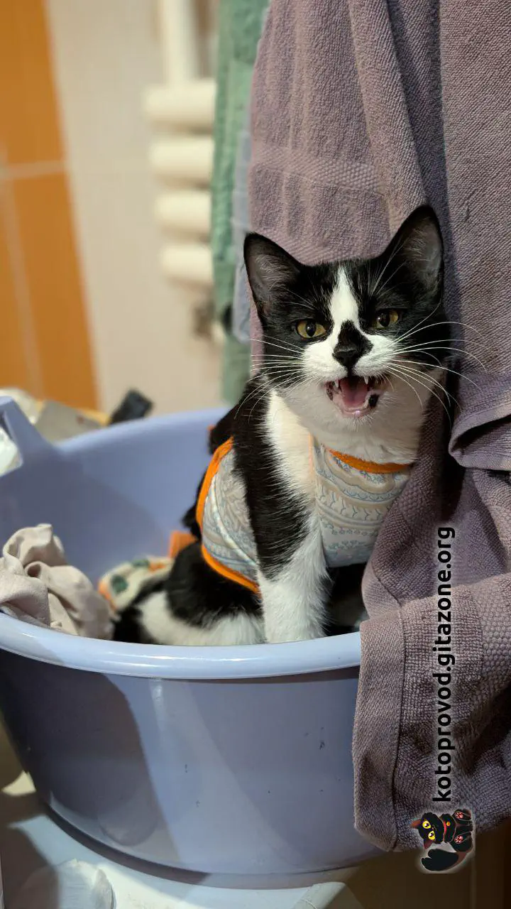 Сейчас Гата с дочкой на временной передержке. Сырнику около месяца, и мама продолжает её кормить. Как только закончится кормление, отвезём Гату на стерилизацию — мы отложили операцию, ведь пока надеть попону она не сможет. Дальше нам придётся выпустить Гату обратно на улицу, если за это время для неё не найдётся дом 😔